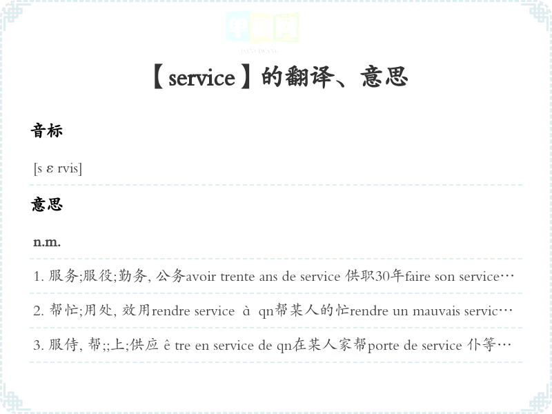 【service】是什么意思、字义解释