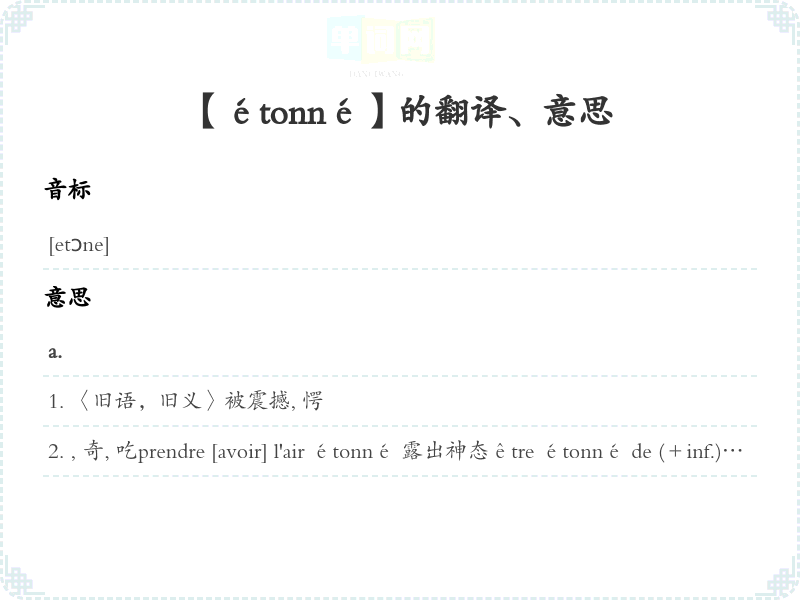 【étonné】是什么意思、字义解释