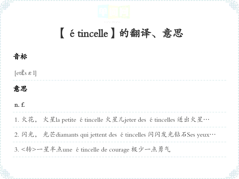 【étincelle】是什么意思、字义解释