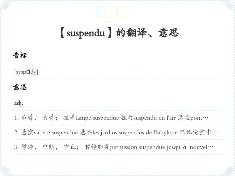 【suspendu】是什么意思、字义解释