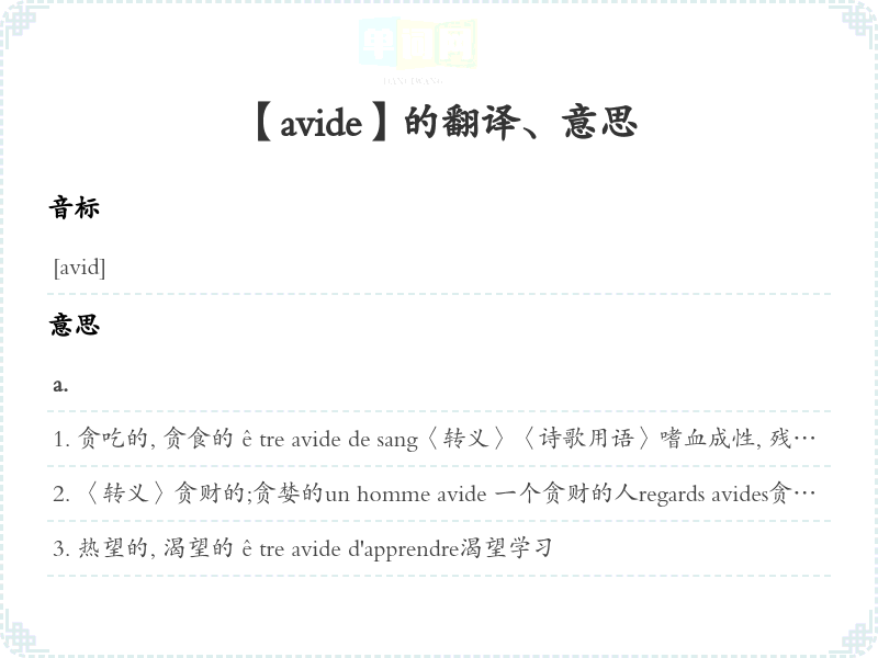【avide】是什么意思、字义解释