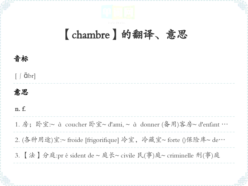 【chambre】是什么意思、字义解释