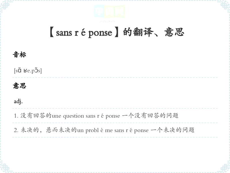 【sans réponse】是什么意思、字义解释