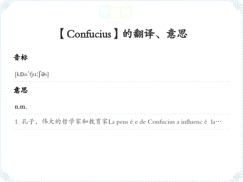 【Confucius】 助记:、 词根:、 联想、 名词化:、 词化:、 形容词化:、 近义词、 反义词、 同音、近音词 联想词