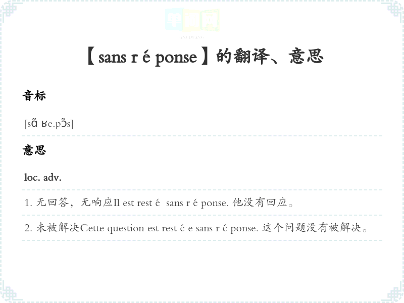 【sans réponse】是什么意思、字义解释