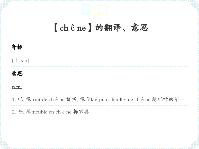 【chêne】是什么意思、字义解释