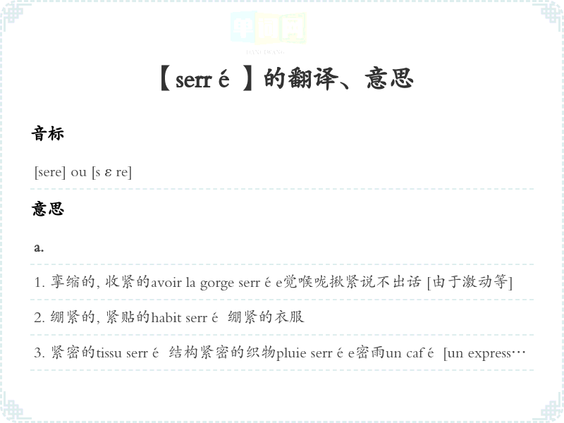 【serré】是什么意思、字义解释