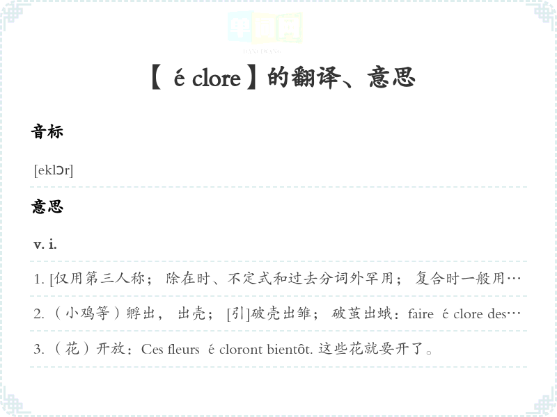 【éclore】是什么意思、字义解释
