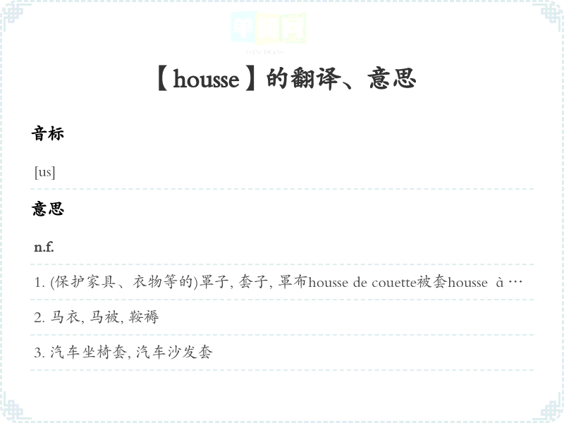 【housse】是什么意思、字义解释
