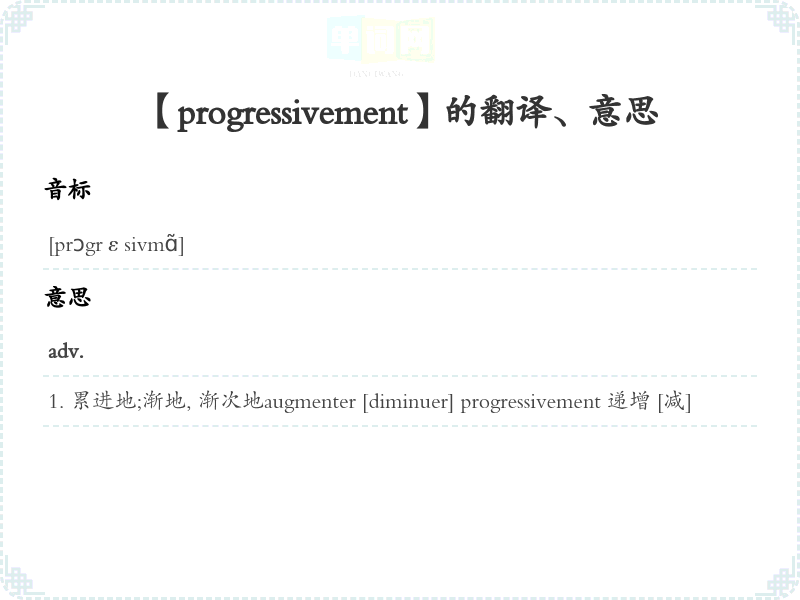 【progressivement】是什么意思、字义解释