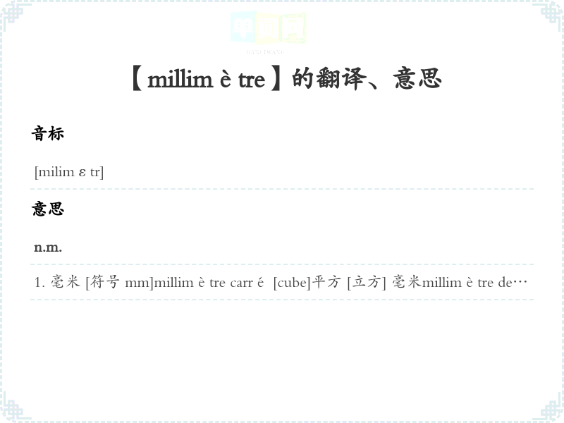【millimètre】是什么意思、字义解释