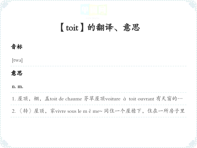 【toit】是什么意思、字义解释