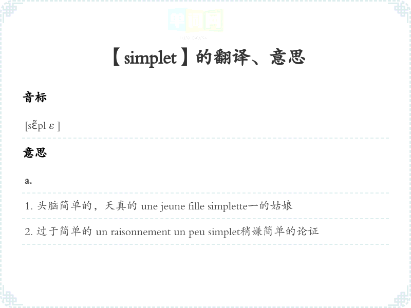 【simplet】是什么意思、字义解释