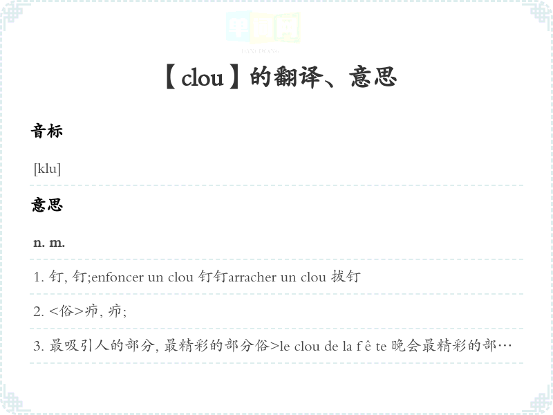 【clou】是什么意思、字义解释