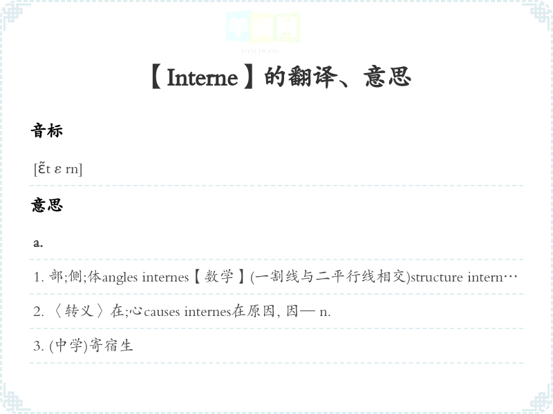 【Interne】 联想:、 近义词:、 反义词: 联想词