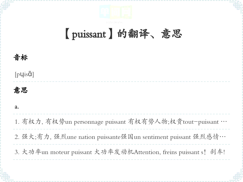 【puissant】 联想:、 近义词:、 反义词: 联想词