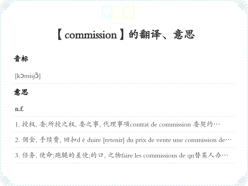 【commission】是什么意思、字义解释