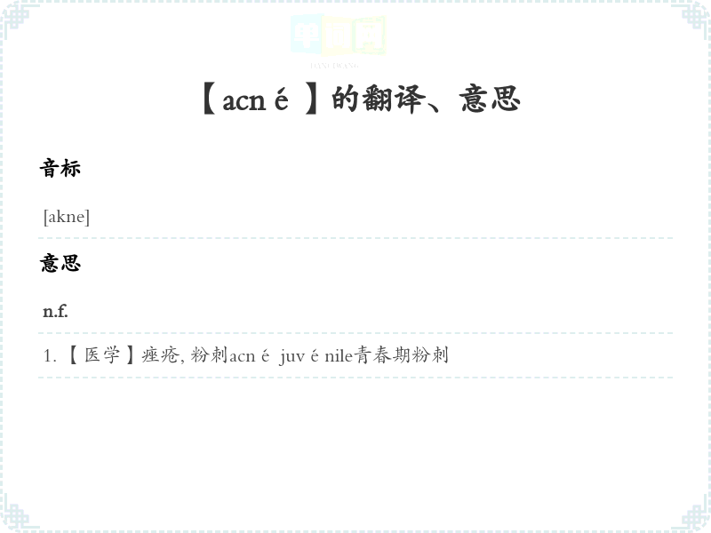 【acné】是什么意思、字义解释
