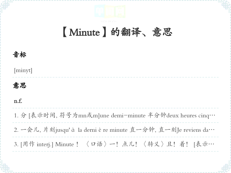 【Minute】是什么意思、字义解释