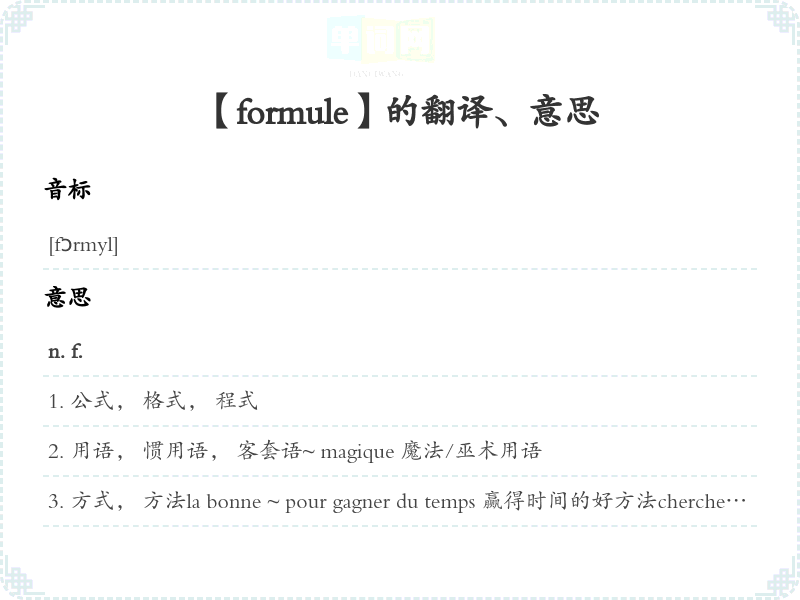 【formule】是什么意思、字义解释
