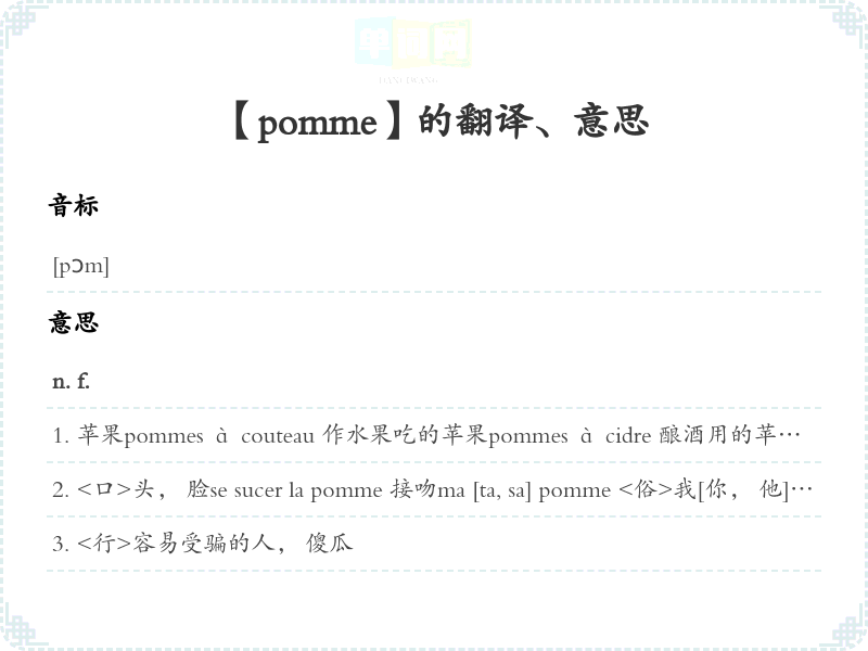 【pomme】是什么意思、字义解释