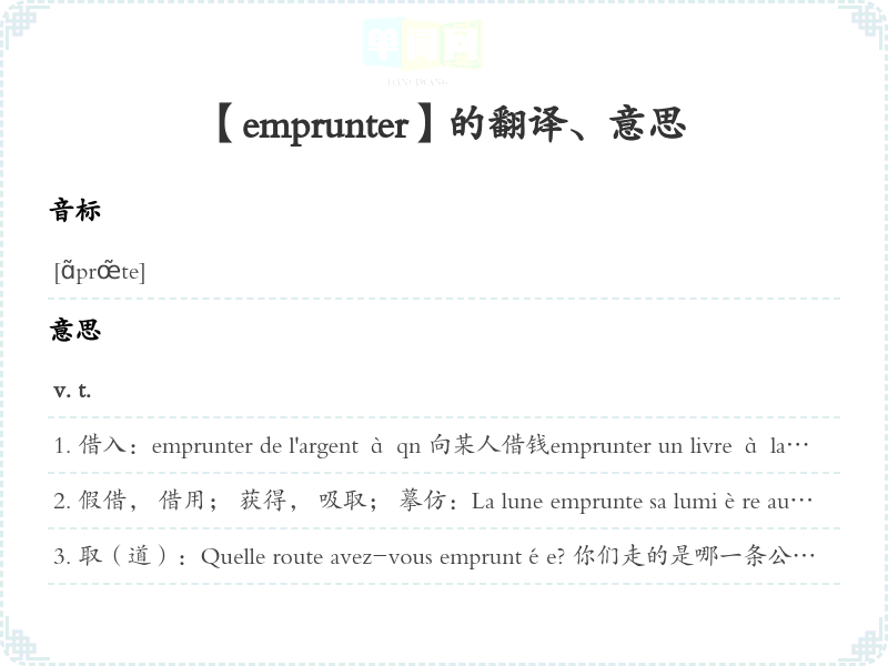 【emprunter】是什么意思、字义解释