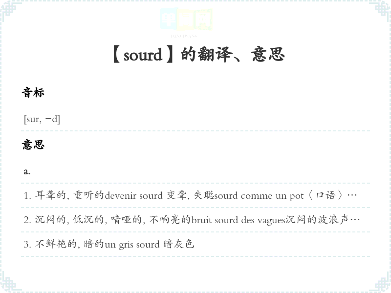 【sourd】 联想:、 近义词:、 反义词: 联想词