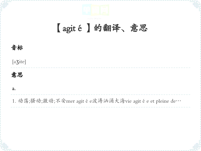 【agité】是什么意思、字义解释