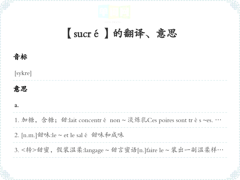 【sucré】 联想:、 近义词:、 反义词: 联想词