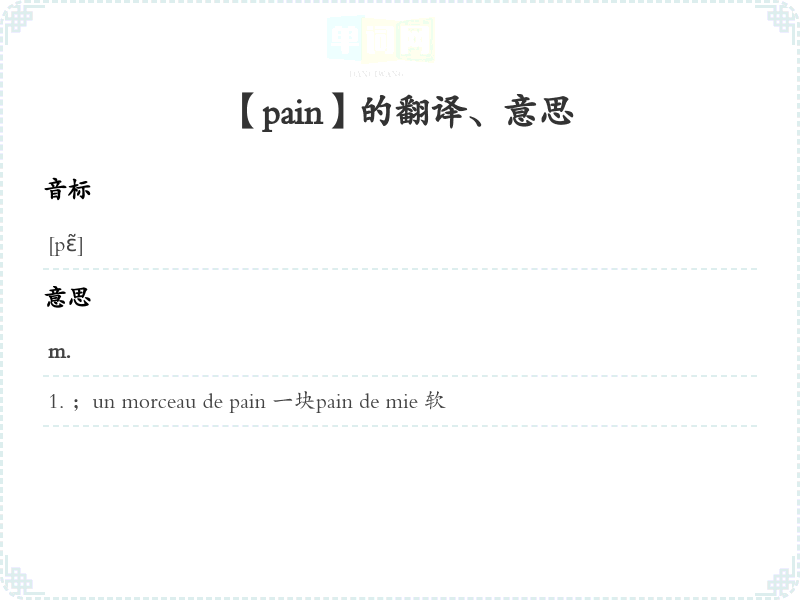 【pain】 词源:、 词根:、 联想、 近义词、 同音、近音词 联想词