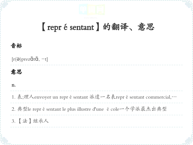 【représentant】是什么意思、字义解释