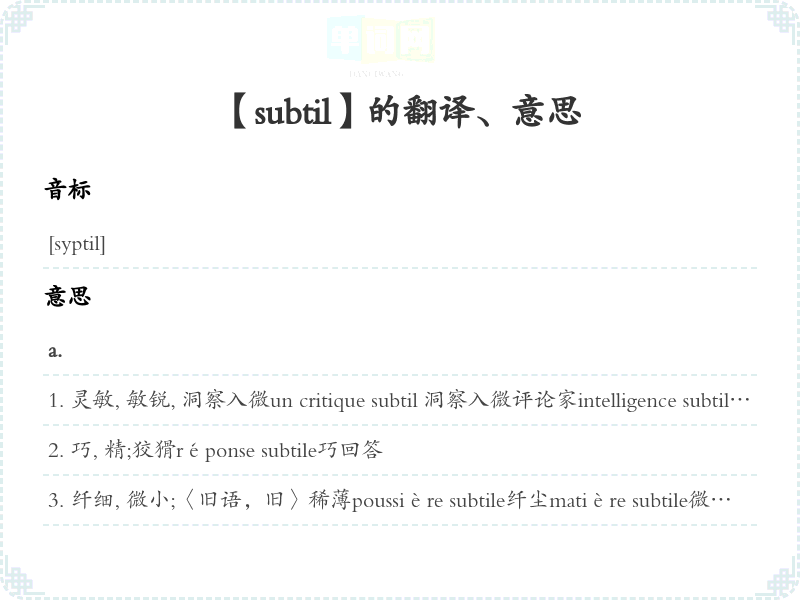 【subtil】是什么意思、字义解释