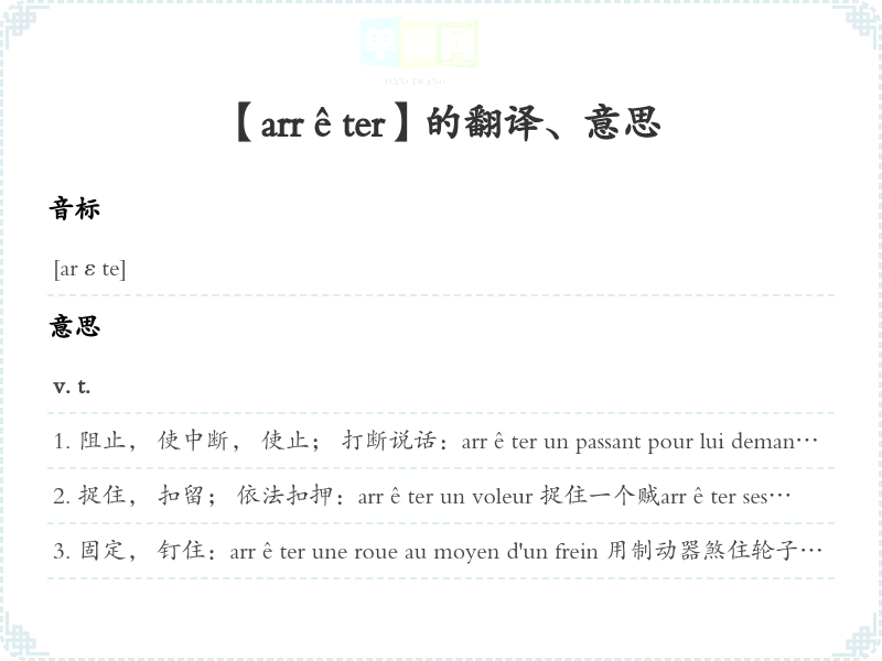 【arrêter】是什么意思、字义解释