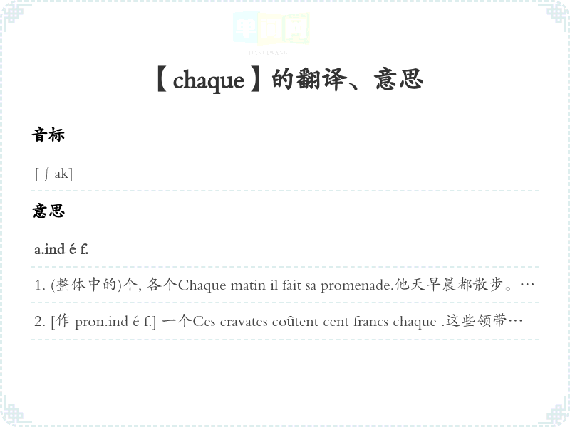 【chaque】是什么意思、字义解释
