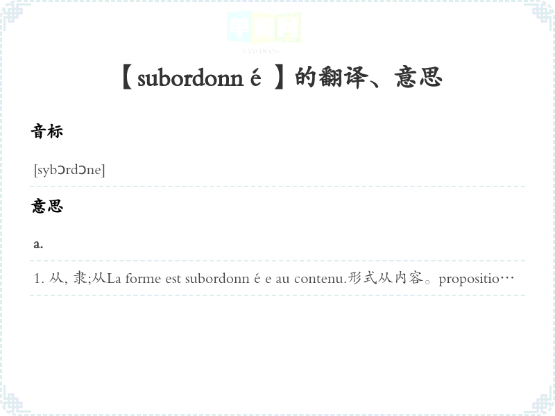 【subordonné】是什么意思、字义解释