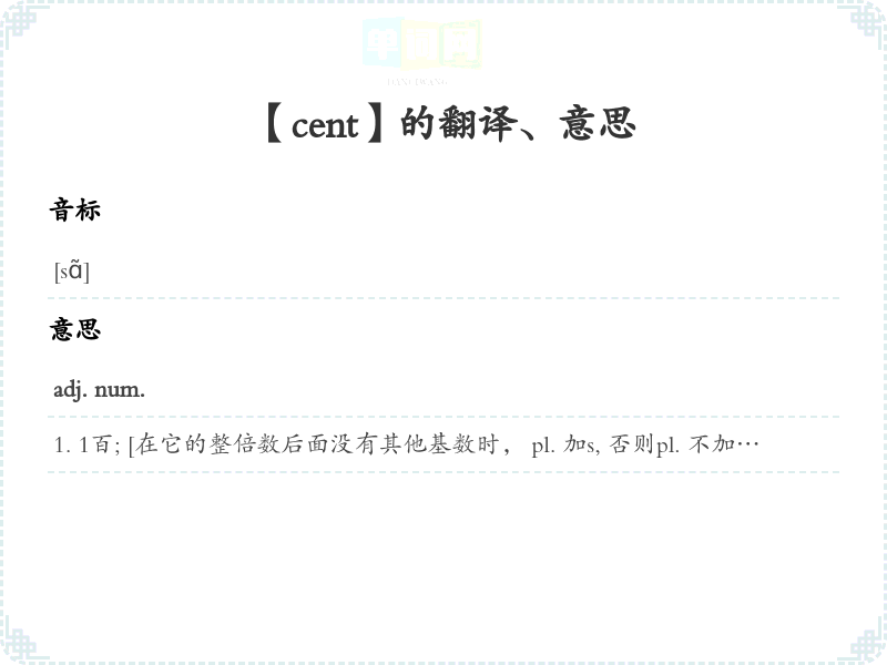 【cent】是什么意思、字义解释