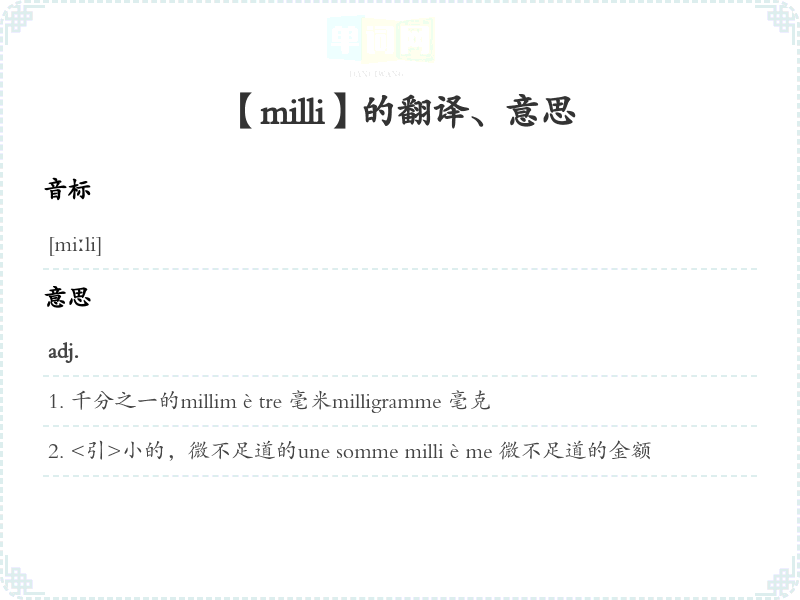 【milli】是什么意思、字义解释