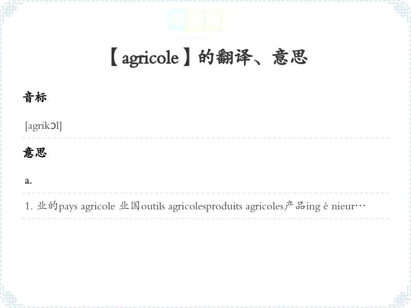 【agricole】是什么意思、字义解释