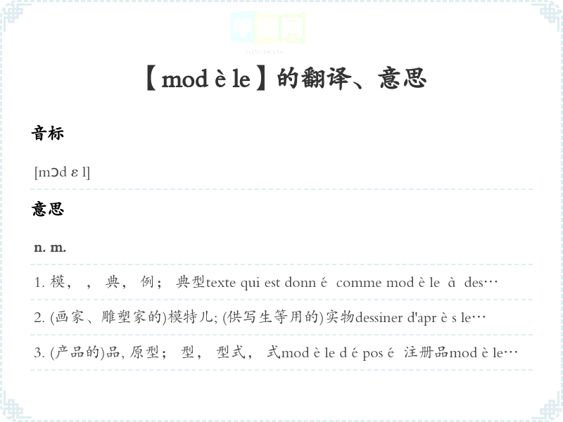 【modèle】是什么意思、字义解释