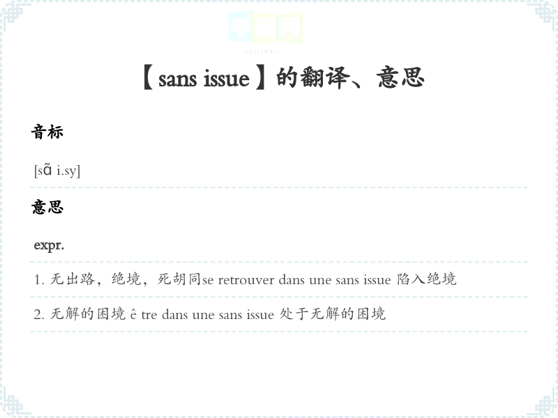 【sans issue】是什么意思、字义解释