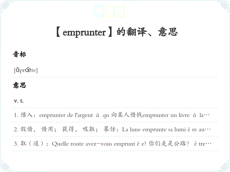 【emprunter】是什么意思、字义解释
