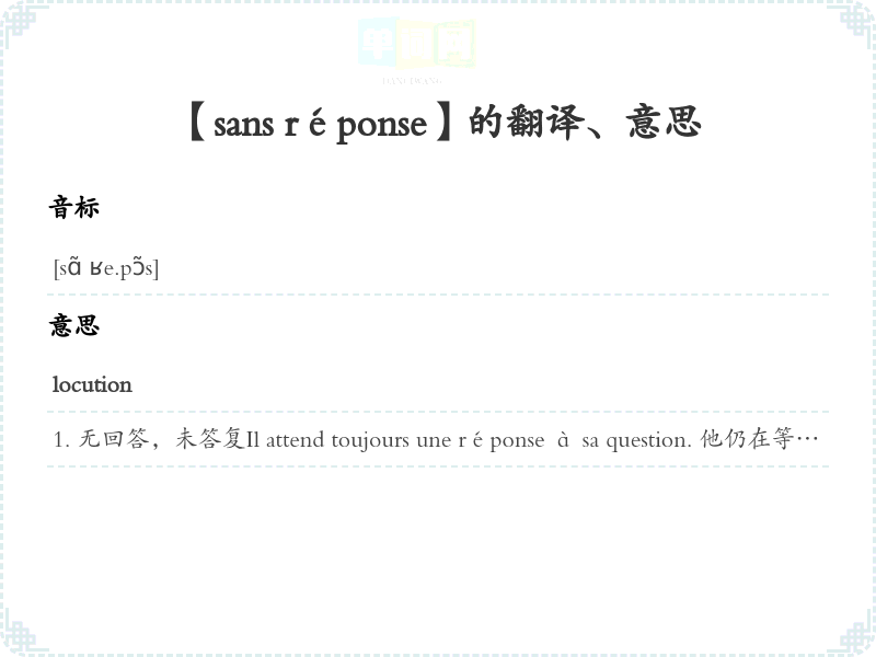 【sans réponse】是什么意思、字义解释