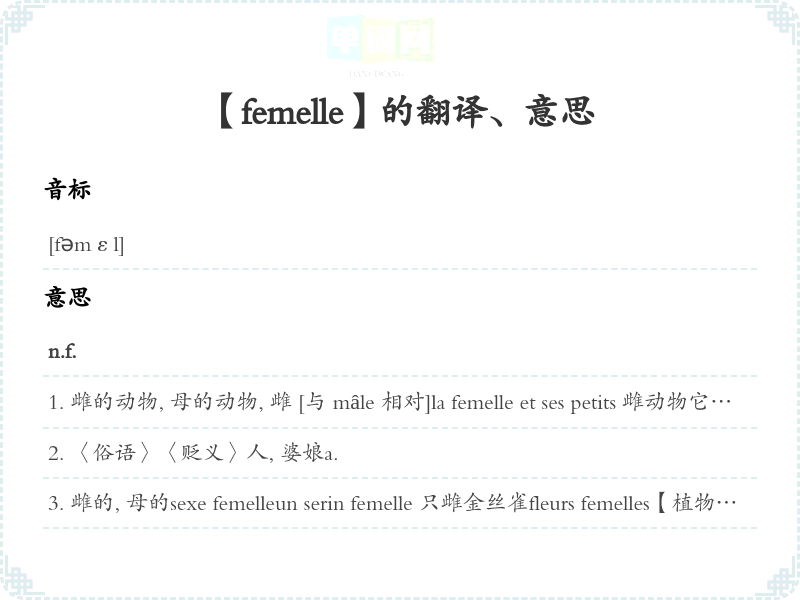 【femelle】是什么意思、字义解释