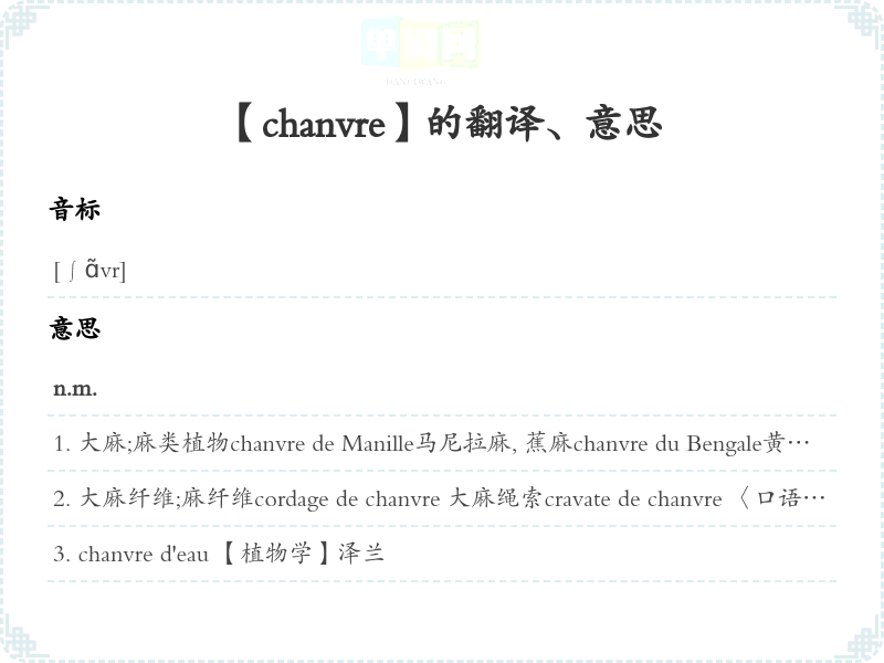 【chanvre】是什么意思、字义解释