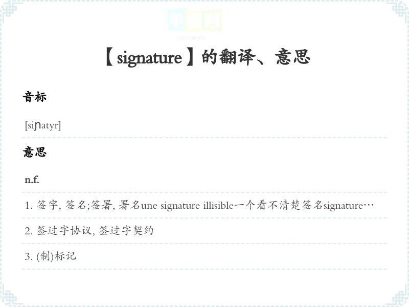 【signature】是什么意思、字义解释