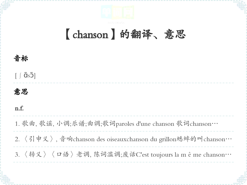【chanson】是什么意思、字义解释