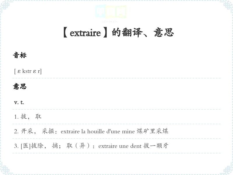 【extraire】是什么意思、字义解释