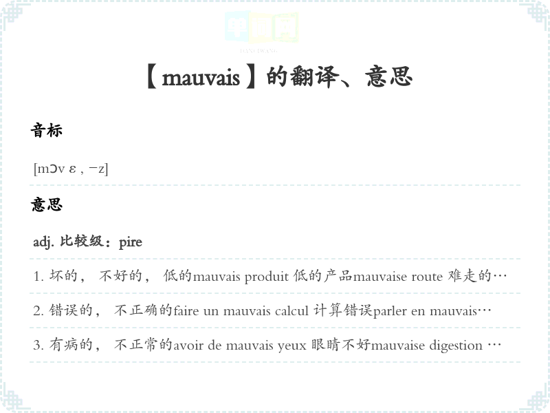 【mauvais】是什么意思、字义解释