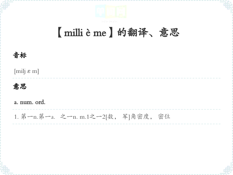 【millième】是什么意思、字义解释