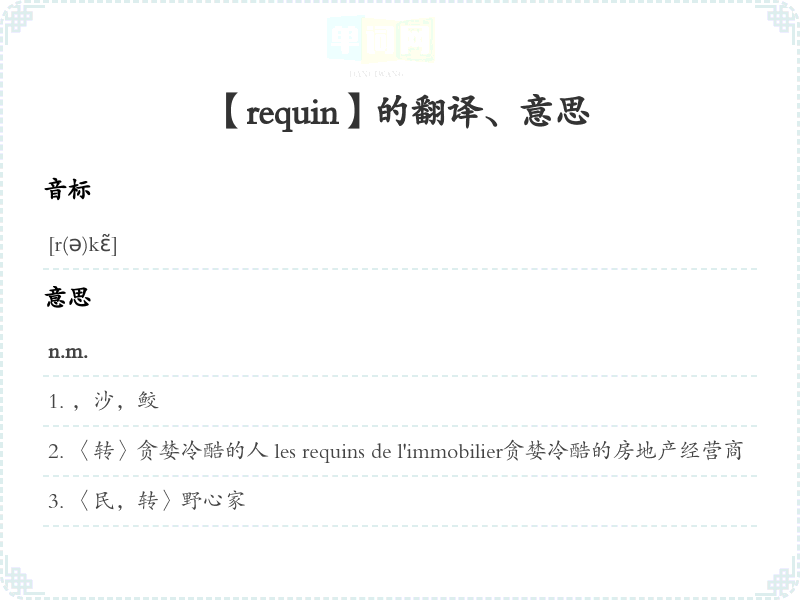 【requin】是什么意思、字义解释
